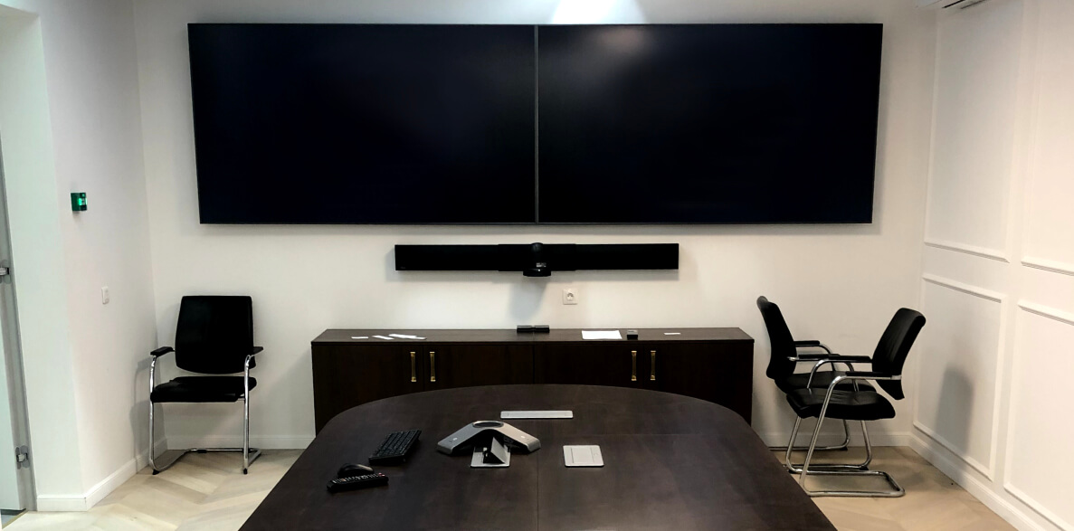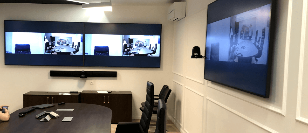 Для проведения совещаний между людьми в конференц-зале и сотрудниками, и партнерами, которые находятся вне конференц-зала мы установили оборудование, позволяющее использовать как аппаратные, так и программные решения для видеоконференцсвязи, а также обеспечили их гибкую интеграцию с микрофонами и видеокамерами.